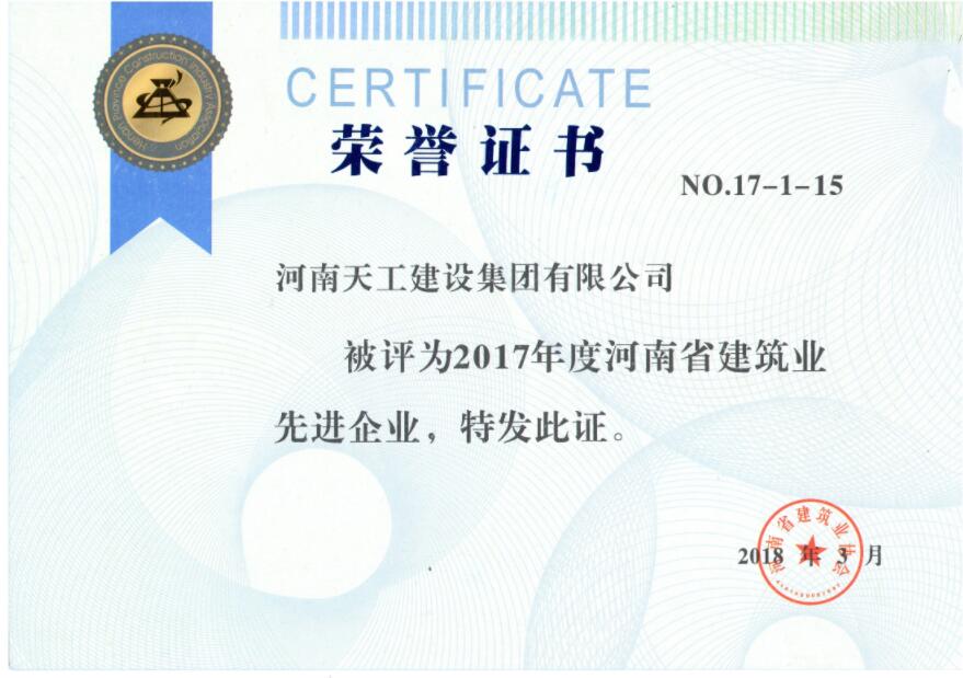2017年度河南省建筑业先进企业