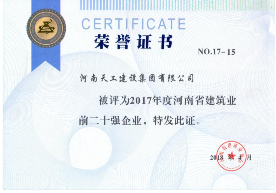 2017年度河南省建筑业企业前20强